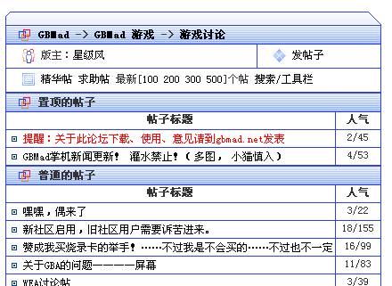 | GBMad BBS和其他的BBS的浏览方式不同,可以说更加人性化,更方便浏览,左右分栏,左边显示帖子列表,右边显示帖子内容及其他内容,不像其他的论坛,每次看完一个帖子后再返回帖子列表查看,浪费时间和网络资源。如果你刚接触可能会有很不习惯,多来几次就会习惯而且会觉得这样很方便。 |