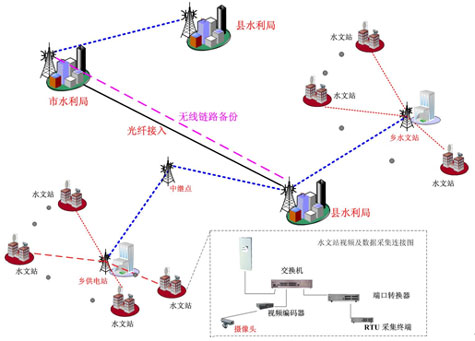 站、县水文站架设的无线设备所提供的带宽较大,满足业务传输的带宽需求,确保无线链路稳定性。